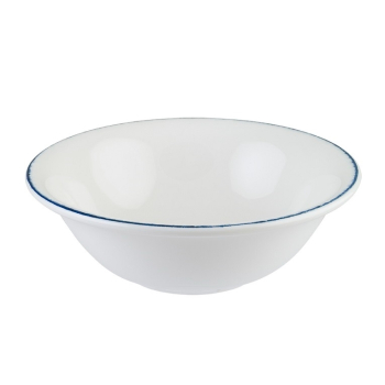 Салатник Bonna Retro | Бонна Ретро 700 мл синий край. Bonna — профессиональный твердый фарфор. В коллекции Retro контрастные цветные линии, нарисованные вручную по краю, что делает ее идеальной для повседневного ужина, в то же время она достаточно изысканная, чтобы стать ярким акцентом. Фарфор Bonna отличается своей прочностью, устойчивостью к сколам и механическим воздействиям, что делает его идеальным для профессионального использования. Все изделия можно мыть в посудомоечной машине и использовать в СВЧ-печах.