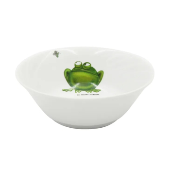 Салатник Лягушка 360 мл фарфор. Фарфоровые изделия Добрушского завода идеально подходят для ежедневного применения и легко переносят большие нагрузки. Это экологически чистая и эргономичная посуда, выгодно отличающаяся высоким качеством и доступной ценой. Благодаря особым технологиям производства фарфор получается тонким и прозрачным, без примесей, с приятным молочным оттенком. Порадует покупателей и разнообразие декоративных решений классического и современного направлений.