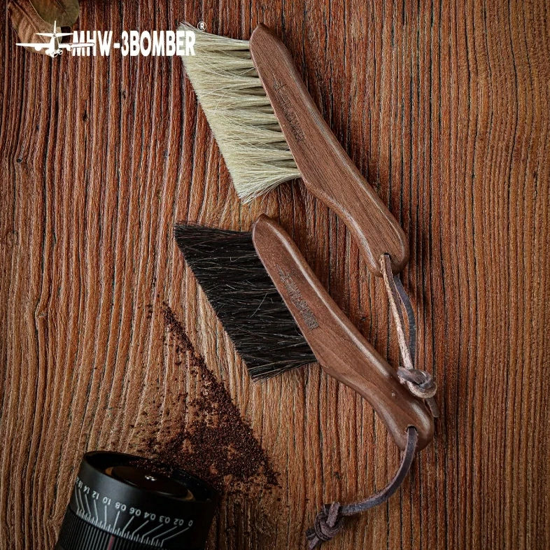 Щетка бариста MHW-3Bomber | МХВ-3Бомбер Knife 130 мм. Щетка в форме ножа изготовлена из натурального дерева и конского волоса. Логотип нанесен с помощью лазерной гравировки. Ремешок из натуральной воловьей кожи. Длина щетины: 33 мм.