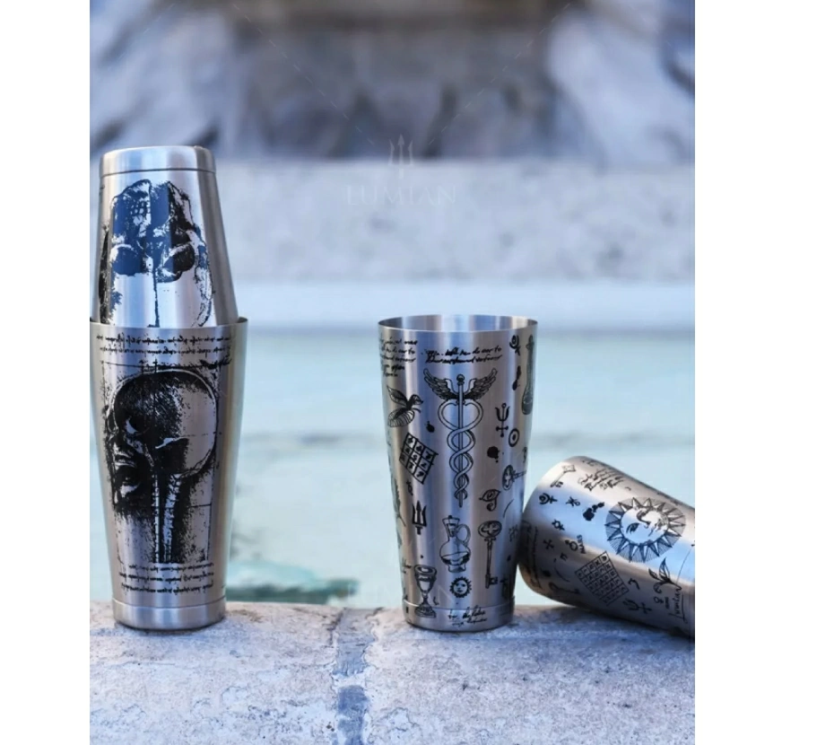 Шейкер Lumian | Люмиан Kenko Boston Leonardo Tin & Half Tin 18-28 oz с гравировкой. Используемая сталь (18/10) имеет толщину 10/10 (равную 1 мм), что делает шейкер Kenko самым прочным и компактным из когда-либо сделанных. Lumian Kenko - это сочетание качества и эффективности.