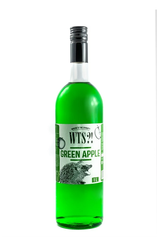 Сироп WTS?! для барных коктейлей Зелёное Яблоко 1 л. Сладкий сироп с натуральным яблочным соком придаст задорную нотку и мягкую кислинку как освежающим лимонадам, так и холодному или горячему чаю. Популярный универсальный фруктовый вкус позволяет составлять оттеночные гаммы с другими вкусовыми носителями. Состав: глюкозно-фруктовый сироп, вода питьевая очищенная, сок яблочный концентрированный, ароматизатор, идентичный натуральному ("Зеленое Яблоко"), регулятор кислотности (лимонная кислота), консервант (бензоат натрия), подсластитель комбинированный "Аспасвит Т" (цикламат натрия, сахаринат натрия, ацесульфам калия, сукралоза), красители пищевые (тартразин, синий блестящий).