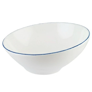 Соусник Bonna Retro | Бонна Ретро 60 мл синий край. Bonna — профессиональный твердый фарфор. В коллекции Retro контрастные цветные линии, нарисованные вручную по краю, что делает ее идеальной для повседневного ужина, в то же время она достаточно изысканная, чтобы стать ярким акцентом. Фарфор Bonna отличается своей прочностью, устойчивостью к сколам и механическим воздействиям, что делает его идеальным для профессионального использования. Все изделия можно мыть в посудомоечной машине и использовать в СВЧ-печах.