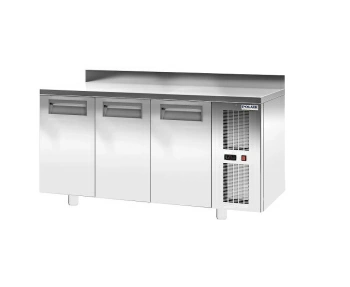 Стол холодильный Polair | Полаир TM3-GC серии Grande предназначен для хранения продуктов и обработки ингредиентов на рабочей поверхности на предприятиях общественного питания и торговли. Цельнозаливной корпус изготовлен из стали и обеспечивают механическую прочность и долговечность стола. Оборудование рассчитано на работу при температуре окружающей среды до 43 °С и относительной влажности воздуха до 80%. Регулировка ножек по высоте. Класс защиты: IP24.
