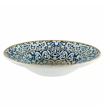Тарелка Bonna Alhambra | Бонна Альхамбра Д=270 мм, 450 мл. Коллекция Alhambra разработана для шеф-поваров, которые хотят внести индивидуальность и изюминку в подачу своих блюд. Цветной декор наносится под глазурь, что делает его устойчивым к механическим повреждениям. Все изделия можно мыть в посудомоечной машине и использовать в СВЧ-печах. Большинство изделий Bonna штабелируются, что делает хранение удобным и позволяет экономить место на профессиональной кухне. Посуда Alhambra выполнена в мавританском стиле, прекрасно впишется в ваш интерьер кухни.