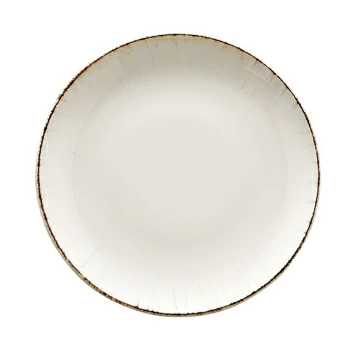 Тарелка Bonna Retro | Бонна Ретро 1300 мл коричневый край. Bonna — профессиональный твердый фарфор. В коллекции Retro контрастные цветные линии, нарисованные вручную по краю, что делает ее идеальной для повседневного ужина, в то же время она достаточно изысканная, чтобы стать ярким акцентом. Фарфор Bonna отличается своей прочностью, устойчивостью к сколам и механическим воздействиям, что делает его идеальным для профессионального использования. Все изделия можно мыть в посудомоечной машине и использовать в СВЧ-печах.
