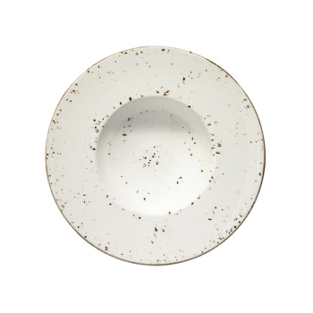 Тарелка для пасты Bonna Grain | Бонна Грейн Д=280 мм форма Банкет. Коллекция фарфора Bonna выполнена из профессионального твердого фарфора теплого сливочного оттенка. На изделях вручную нанесен декор в виде кофейной крошки. Нанесение декора делается под глазурь. Фарфор Bonna отличается своей прочностью, устойчивостью к сколам и механическим воздействиям, что делает его идеальным для профессионального использования. Все изделия можно мыть в посудомоечной машине и использовать в СВЧ-печах.