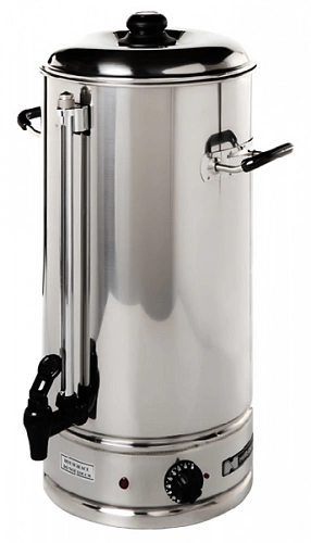 Термопот Hurakan | Хуракан HKN-HVN10 предназначен для быстрого получения кипяченой воды и поддержания заданной температуры. Кипятильник применяется на линиях раздачи в кафе, барах, ресторанах, столовых, на предприятиях общественного питания, в школах, детских садах, медицинских заведениях и офисах. Модель заливного типа, вода заливается вручную. Электрический водонагревательный котел оснащен автоматическим контролем уровня воды и температуры. Механическая панель управления включает в себя: индикаторы нагрева и термостата.