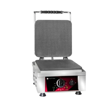 Вафельница Tatra | Татра TWI 1 GELATO предназначена для выпечки вафель для мороженого. Модель оснащена электромеханической панелью управления с терморегулятором, 1 зоной выпечки, емкостью для сбора жира и индикаторами питания и нагрева. Корпус выполнен из нержавеющей стали, несъемные рабочие поверхности - из чугуна. Размер вафли: 230х230 мм. Температурный режим: от 50 до 300 °C.
