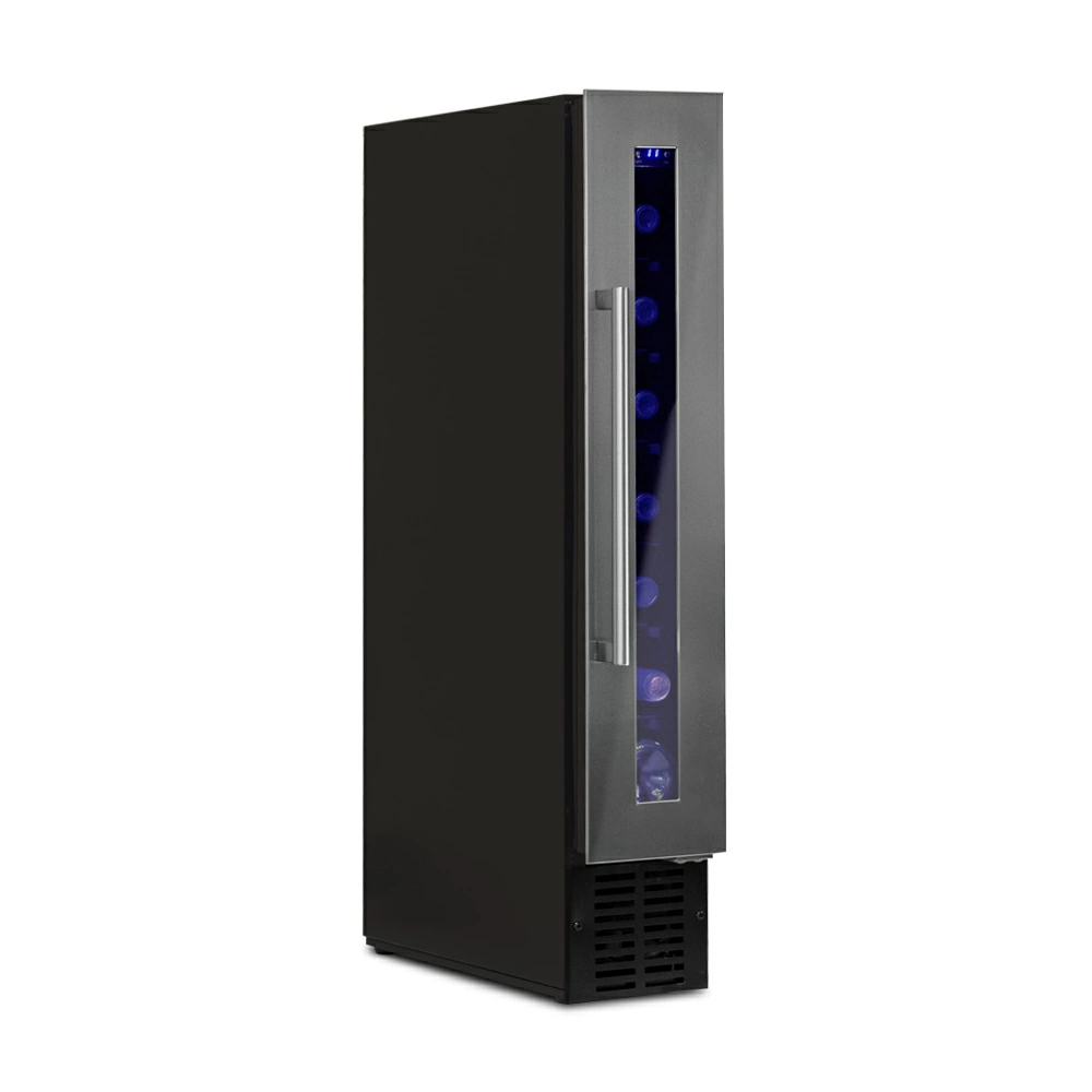 Винный шкаф Cold Vine | Колд Вайн C7-KST1. Компактный и лаконичный винный шкаф вмещает в себя 7 бутылок вина типа бордо. Модель оснащена внутренним вентилятором для равномерного доступа холодного воздуха ко всем полкам шкафа и внешним вентилятором для быстрого и эффективного охлаждения компрессора. Комплектуется холодильник C7-KST1 шестью полками из пластифицированного металла. Надежная фиксация полок исключает возможность малейших вибраций и колебаний внутри шкафа. В верхней части шкафа находится интуитивно-понятная электронная панель управления, с легкостью регулируйте температуру и освещение внутри шкафа. Дизайн модели подойдет для любой современной кухни, бара или гостиной. Корпус винного шкафа выполнен из металла чёрного цвета, дверца обшита бесшовной нержавеющей сталью. Тройное защитное стекло защитит Вашу винную коллекцию от вредного воздействия солнечных лучей и поможет создать идеальный микроклимат винного погреба внутри шкафа. Удобная накладная ручка из нержавеющей стали легко снимается и устанавливается на дверцу. Цифровой индикатор температуры и внутреннее освещение – на светодиодах синего цвета. Не рекомендуется устанавливать прибор на полы с подогревом без специальной термоизолирующей подложки. Слишком низкая температура окружающей среды также может быть причиной неправильной работы изделия.