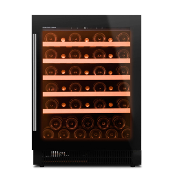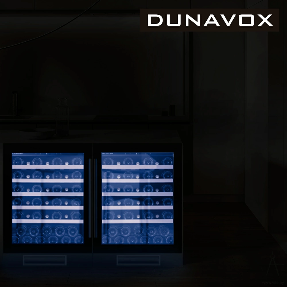 Винный шкаф Dunavox | Дунавокс DAUF-46.138B. Эксклюзивный компрессорный винный шкаф с одной температурной зоной. Продуманная технология охлаждения создаст идеальный микроклимат для хранения и выдержки самых разнообразных сортов вин. Модель с легкостью встраивается под столешницу, обеспечивая свободное рабочее пространство и уют на Вашей кухне. Благодаря углубленному цоколю вы сможете оформить вентиляционную решетку под ваш интерьер. Защищающее от УФ-излучения тройное прозрачное стекло не только дополняет шикарный внешний вид модели, а также дает возможность выбрать необходимый сорт вина не открывая дверь. Ваши любимые вина будут надежно храниться на выдвижных полках из массива бука – дерево погасит вибрации и колебания, обеспечивая винам абсолютный покой. Диапазон влажности воздуха от 60 - 80 % предотвратит высыхание пробки и не пропустит излишнее количество воздуха внутрь бутылки. Угольный фильтр эффективно поглощает посторонние запахи и бактерии, создавая кристально-чистый воздух во всей зоне хранения. Управление всеми функциями шкафа осуществляется с помощью интуитивно-понятной сенсорной панели управления. Автоматическая система размораживания упростит эксплуатацию.
