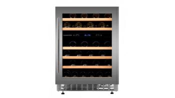Винный шкаф Dunavox | Дунавокс DAUF-46.145DSS. Компрессорный винный шкаф обладает средней вместимостью и способен разместить в себе до 46 бутылок. Располагаются они на выдвижных полках из массива бука. Внутреннее пространство шкафа разделено на 2 температурные зоны с возможностью настраивать каждую из них в диапазоне от +5 °C до +20 °C. Электронный термостат помогает стабильно поддерживать заданную Вами температуру. Холодильник поддерживает влажность в диапазоне 60-80%, как в настоящем винном погребе. Для дополнительного повышения влажности предусмотрен контейнер для дистиллированной воды. Наличие «Зимнего режима» даёт возможность повысить температуру внутри шкафа, если температура в помещении упала ниже установленной для хранения вина. Угольный фильтр очищает воздух и предотвращает появление посторонних запахов, которые могут испортить вкус напитка. Лаконичный дизайн шкафа придаёт интерьеру современный вид. Чёрный корпус и рамка из бесшовной нержавеющей стали добавляют элегантности и солидности. В этой модели использовано панорамное освещение синего, янтарного и белого цвета, которое обеспечивает равномерную подсветку всех полок. (Освещение плавно включается при открывании дверцы, а через пару секунд после закрытия плавно гаснет.) Дополнительно у данной модели шкафа предусмотрен демонстрационный режим, во время которого освещение не гаснет. Такая функция помогает демонстрировать винную коллекцию Вашим друзьям и близким. Удобное и понятное сенсорное управление, исключает вероятность случайного нажатия. Встроенный автодоводчик обеспечивает мягкое закрывание двери. Если Вы забыли или не до конца закрыли шкаф – сигнализатор двери оповестит об этом. Винный шкаф DAUF-46.145DSS – современное решение в вопросе хранения вин.
