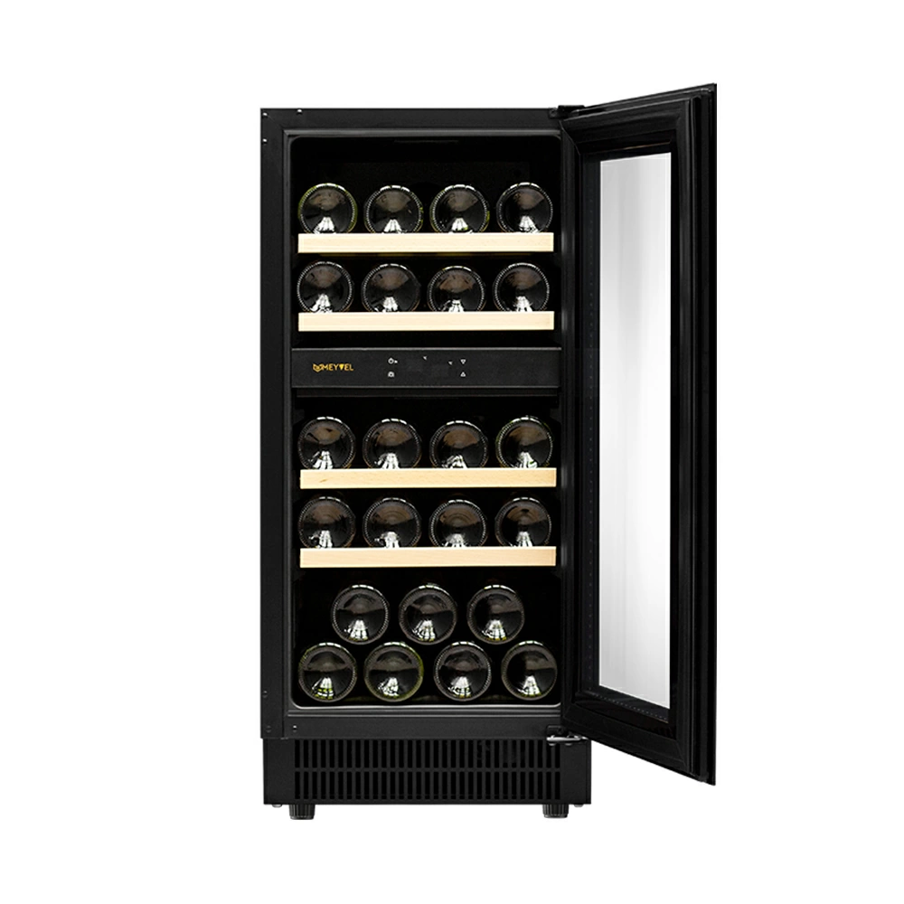 Винный шкаф Meyvel | Мэйвел MV23-KBT2 оснащен дверью с защитой от ультрафиолетовых лучей и отлично подойдет для хранения и созревания различных сортов вин. Динамическая система охлаждения обеспечивает оптимальную температуру для вина и сохраняет необходимую влажность внутри камеры. Компрессорный винный шкаф Meyvel MV23-KBT2 обладает большой вместимостью и способен разместить до 46 бутылок. Располагаются они на полках из массива бука. Внутреннее пространство шкафа разделено на 2 температурные зоны с возможностью настраивать каждую из них в диапазоне: нижняя зона от +5°C до +10°C, верхняя - от +10°C до +18°C. Холодильник поддерживает влажность в диапазоне 60-80%, как в настоящем винном погребе.
