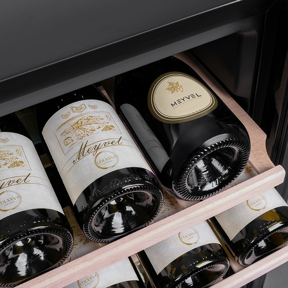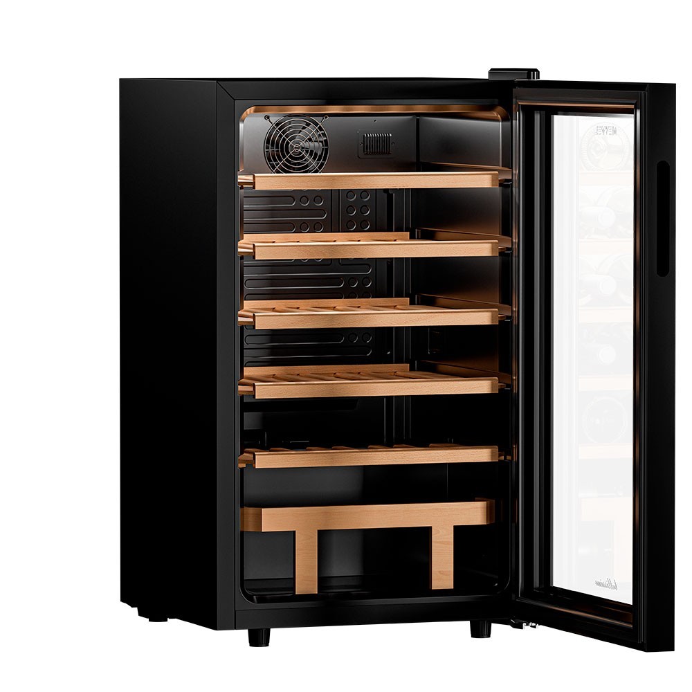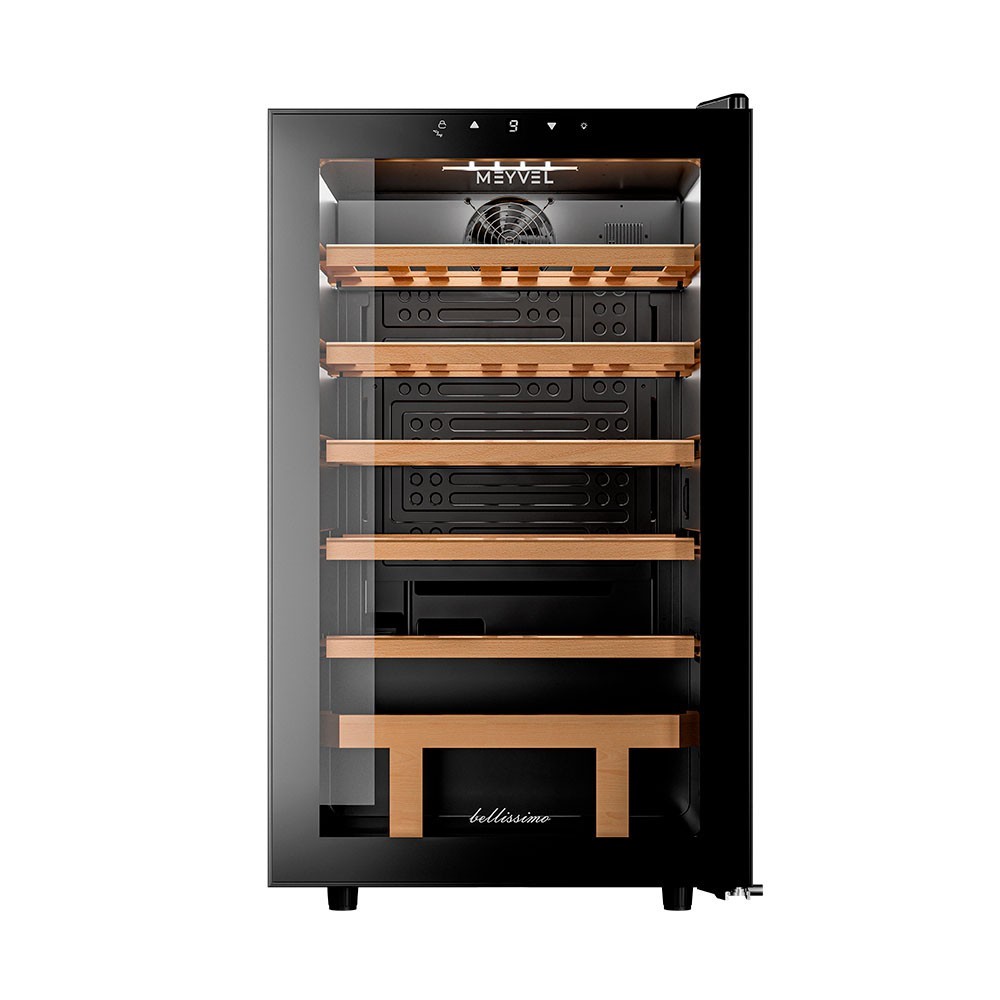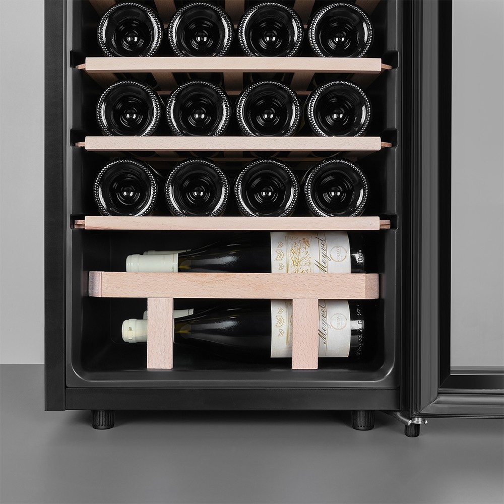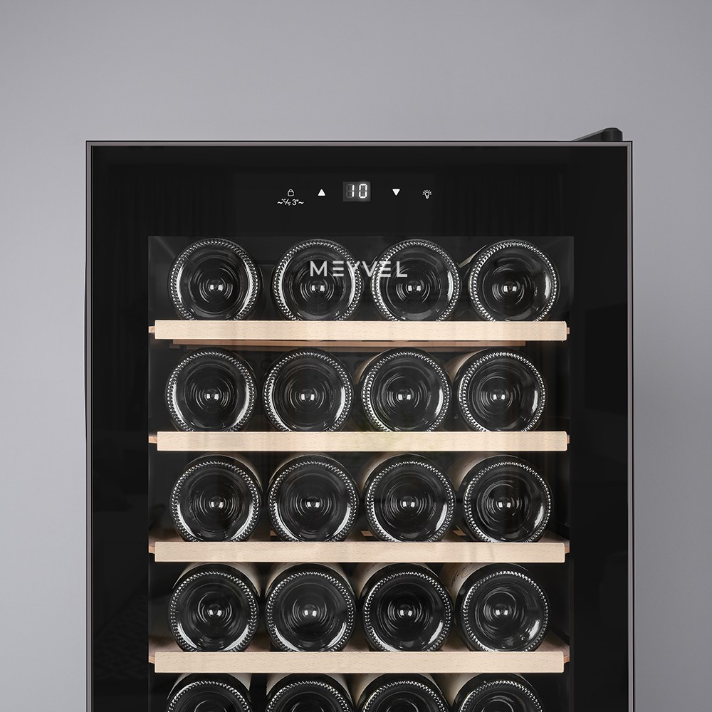 Винный шкаф Meyvel | Мэйвел MV24-KBF1 — идеальное решение для обустройства стильного винного уголка в ресторане, баре или квартире. Компрессорная отдельностоящая модель вмещает до 24 бутылок и создает условия для правильного хранения и элегантной демонстрации винной коллекции. Уникальная система контроля температуры и влажности поддерживает оптимальные условия для длительного содержания напитков — от +5 до +18°C и влажность 60-80%. Двойное стекло с УФ-фильтром защищает бутылки от вредного воздействия солнечных лучей, сохраняя их превосходный вкус и аромат. 5 выдвижных полок из бука обеспечат удобный доступ к содержимому, на полке для нестандартных бутылок с увеличенным пространством можно разместить шампанское. Кроме этого, в шкафу можно располагать бутылки стоя, что удобно для хранения уже открытого вина. Изящная подсветка внутреннего пространства создаст особую атмосферу винного уголка. Регулируемые ножки помогут идеально выровнять шкаф, а утопленная ручка обеспечит его компактность и аккуратный внешний вид. Meyvel MV24-KBF1 — это надежность, функциональность и элегантность, которые сделают ваше винное хранилище предметом гордости и восхищения гостей. Доверьте свою коллекцию этому безупречному винному шкафу.
