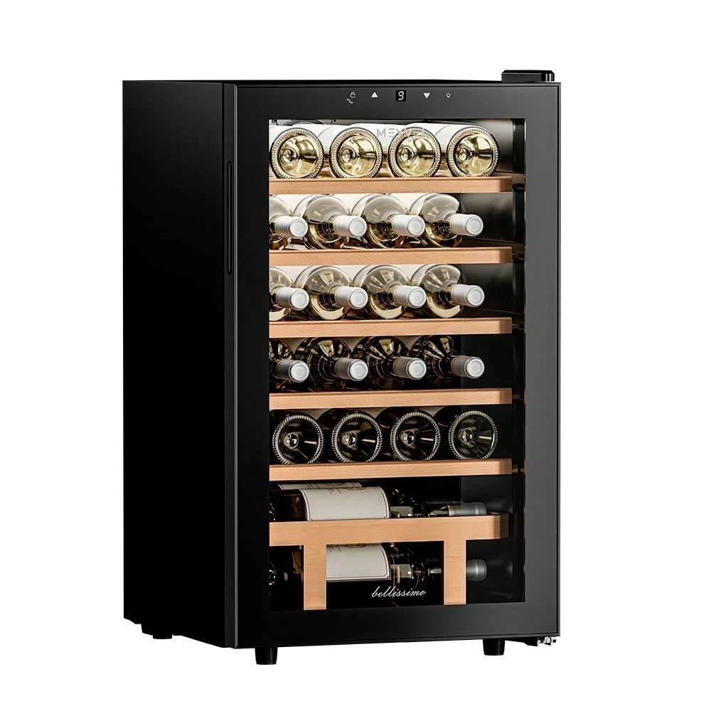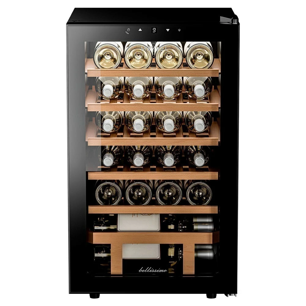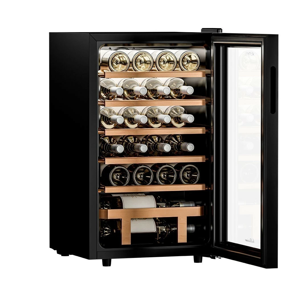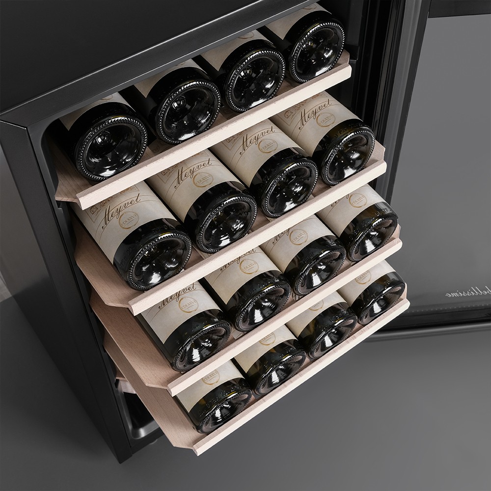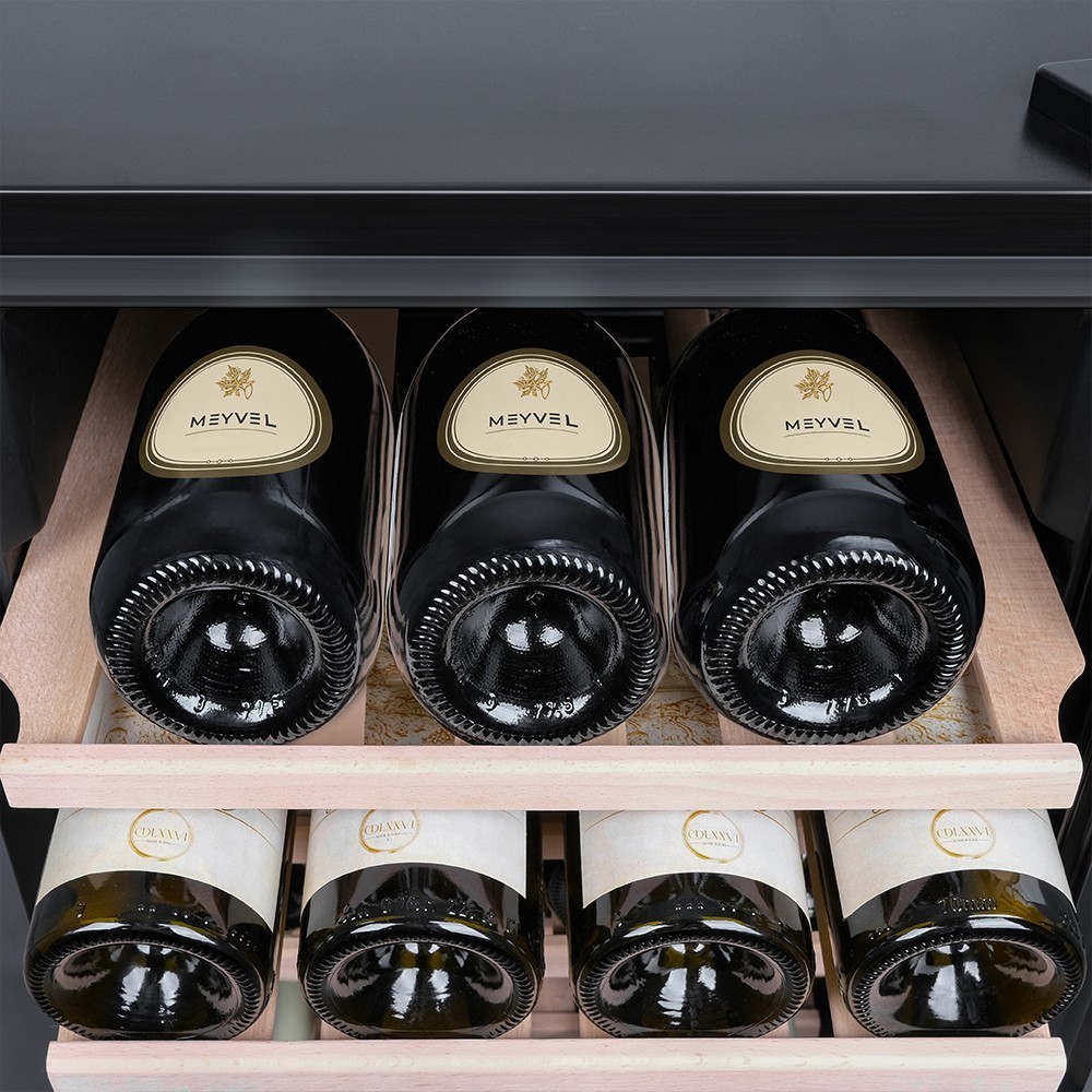 Винный шкаф Meyvel | Мэйвел MV24-KBF1 — идеальное решение для обустройства стильного винного уголка в ресторане, баре или квартире. Компрессорная отдельностоящая модель вмещает до 24 бутылок и создает условия для правильного хранения и элегантной демонстрации винной коллекции. Уникальная система контроля температуры и влажности поддерживает оптимальные условия для длительного содержания напитков — от +5 до +18°C и влажность 60-80%. Двойное стекло с УФ-фильтром защищает бутылки от вредного воздействия солнечных лучей, сохраняя их превосходный вкус и аромат. 5 выдвижных полок из бука обеспечат удобный доступ к содержимому, на полке для нестандартных бутылок с увеличенным пространством можно разместить шампанское. Кроме этого, в шкафу можно располагать бутылки стоя, что удобно для хранения уже открытого вина. Изящная подсветка внутреннего пространства создаст особую атмосферу винного уголка. Регулируемые ножки помогут идеально выровнять шкаф, а утопленная ручка обеспечит его компактность и аккуратный внешний вид. Meyvel MV24-KBF1 — это надежность, функциональность и элегантность, которые сделают ваше винное хранилище предметом гордости и восхищения гостей. Доверьте свою коллекцию этому безупречному винному шкафу.