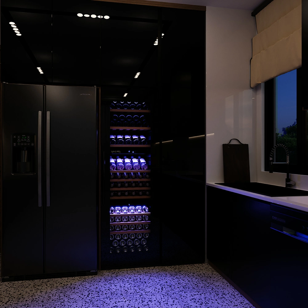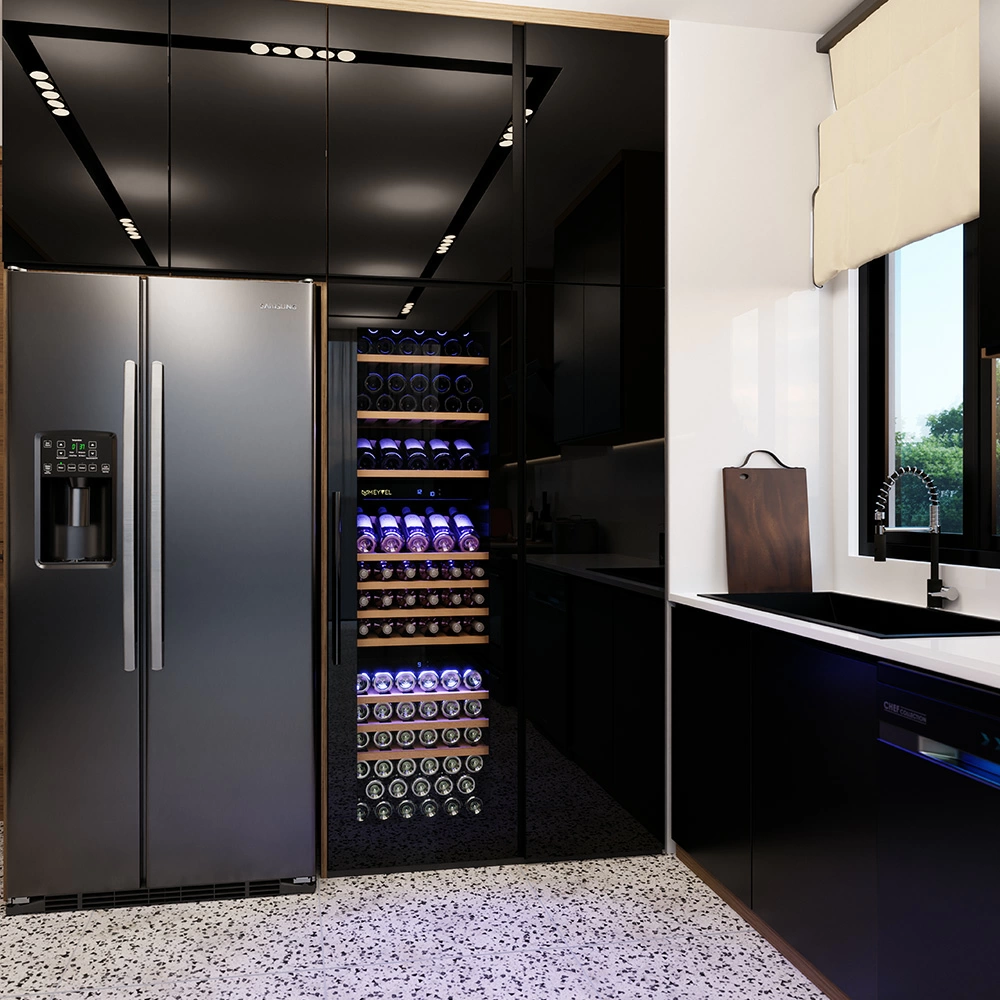 Винный шкаф Meyvel | Мэйвел MV89-KBB3 оснащен дверью с защитой от ультрафиолетовых лучей и отлично подойдет для хранения и созревания различных сортов вин. Динамическая система охлаждения обеспечивает оптимальную температуру для вина и сохраняет необходимую влажность внутри камеры. Компрессорный винный шкаф Meyvel MV89-KBB3 обладает большой вместимостью и способен разместить до 89 бутылок. Располагаются они на полках из массива бука. Внутреннее пространство шкафа разделено на 3 температурные зоны с возможностью настраивать каждую из них. Общий температурный диапазон от +5°C до +18°C. Холодильник поддерживает влажность в диапазоне 60-80%, как в настоящем винном погребе.