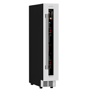Винный шкаф Meyvel | Мэйвел MV9-KWT1 имеет привлекательный внешний вид, сочетающий в себе неподвластное времени очарование натуральных материалов с высокотехнологичными системами сохранения продуктов. Винный холодильник Meyvel MV9-KWT1 оснащен дверью с защитой от ультрафиолетовых лучей и отлично подойдет для хранения и созревания различных сортов вин. Динамическая система охлаждения обеспечивает оптимальную температуру для вина и сохраняет необходимую влажность внутри камеры. Компрессорный винный шкаф Meyvel MV9-KWT1 несмотря на небольшой размер, обладает большой вместимостью и дает возможность разместить до 9 бутылок. Располагаются они на держателях из массива бука. Внутреннее пространство шкафа поддерживает комфортную для вина температуру от +5℃ до +20℃ и имеет самую большую вместимость среди аналогичных винных шкафов. Преимуществом этой модели является возможность разместить внутри одну высокую бутылку. Так же, MV9-KWT1 данная модель поддерживает влажность в диапазоне 60-80%, как в настоящем винном погребе.