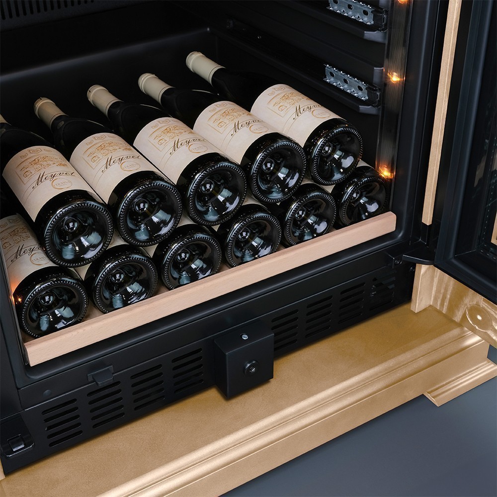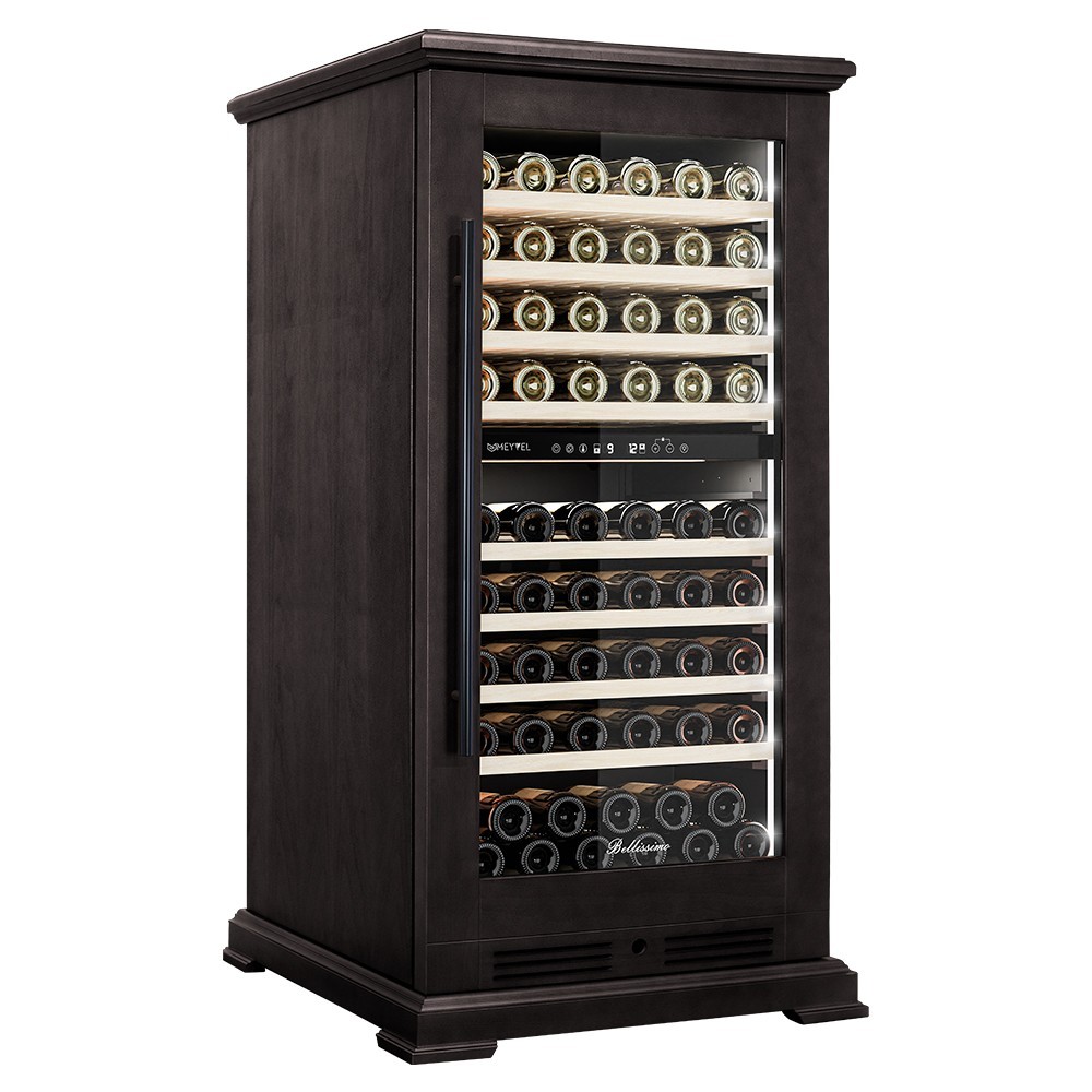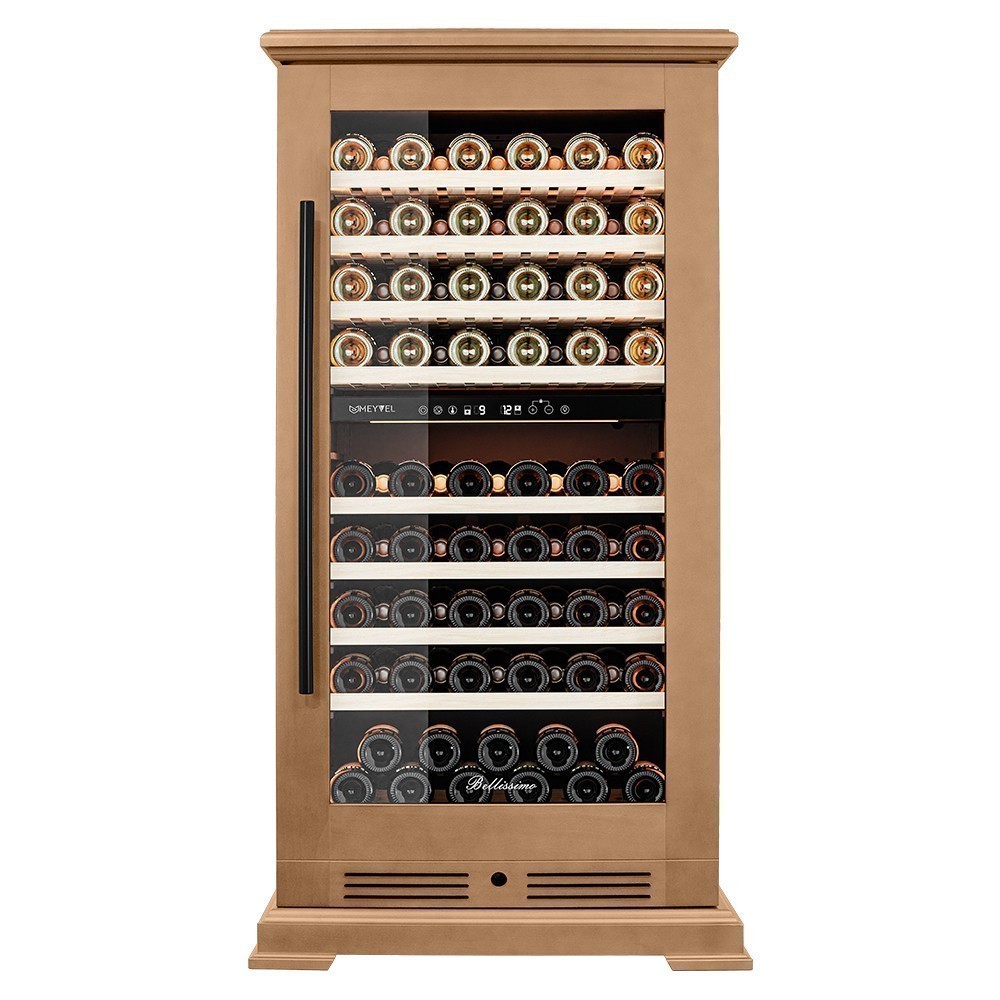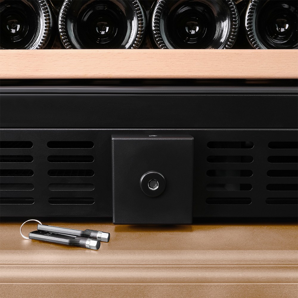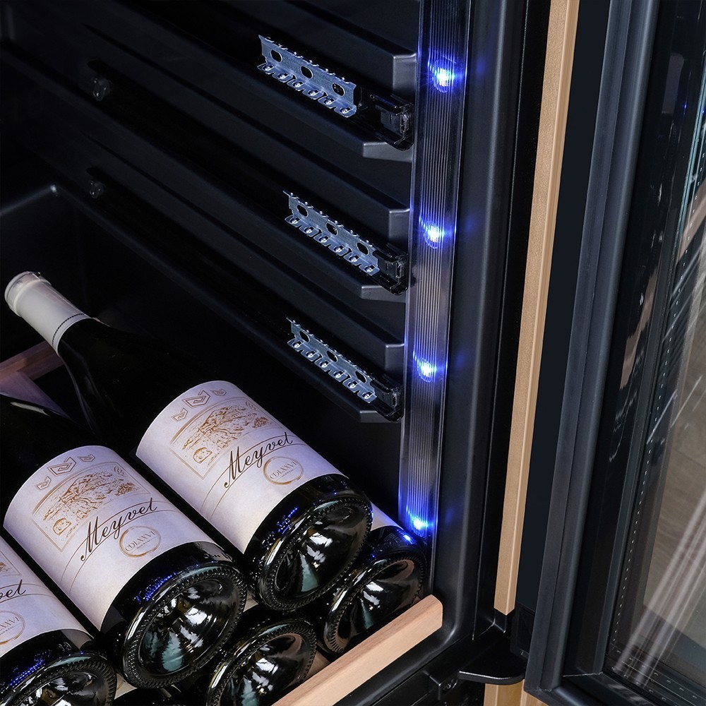Винный шкаф Meyvel | Мэйвел MV99PRO-KBT2 — имеет привлекательный внешний вид, сочетающий в себе неподвластное времени очарование натуральных материалов с высокотехнологичными системами сохранения продуктов. Винный холодильник Meyvel MV99PRO-KBT2 оснащен дверью с защитой от ультрафиолетовых лучей и отлично подойдет для хранения и созревания различных сортов вин. Динамическая система охлаждения обеспечивает оптимальную температуру для вина и сохраняет необходимую влажность внутри камеры. Стальной корпус обшит натуральным деревом, который выдерживает большие нагрузки и обладает красивой текстурой. Компрессорный винный шкаф Meyvel MV99PRO-KBT2 обладает большой вместимостью и способен разместить до 99 бутылок. Располагаются они на полках из массива бука. Внутреннее пространство шкафа разделено на 2 температурные зоны с возможностью настройки в диапазоне от + 5°C до +20°C. Холодильник поддерживает влажность в диапазоне 60-80%, как в настоящем винном погребе.