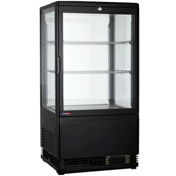 Витрина холодильная Cooleq | Кулек CW-70 black – демонстрационное оборудование с односторонним открытием дверки. Устанавливается на барную стойку, прилавок, торговый стенд и служит для охлаждения и хранения салатов, закусок, суши, роллов, пиццы, кондитерской и кулинарной продукции, а также пакетированных и бутилированных напитков, соков, воды и алкоголя.