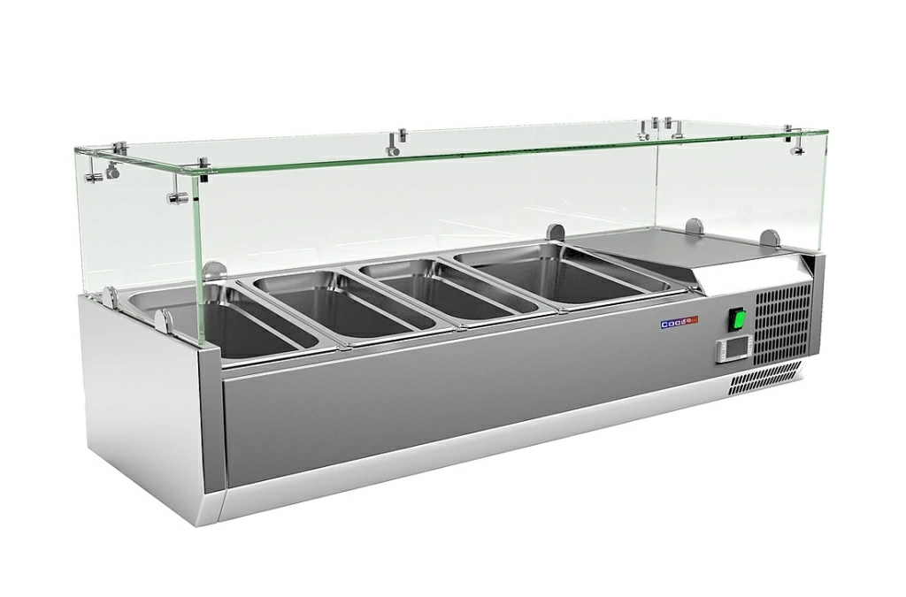 Витрина холодильная Cooleq | Кулек VRX 1200/380 – компактная модель для настольной эксплуатации в заведениях питания: столовых, буфетах, кондитерских и кофейнях. Предназначена для выкладки разнообразных закусок, салатов, кремов и муссов, изделий кулинарии. Многофункциональный дисплей с индикацией работы компрессора и разморозки, панель для корректировки температурного режима; электронный термостат; разморозка в ручном или авторежиме, способ – естественными теплопритоками. Гастроемкости в комплект поставки не входят.
