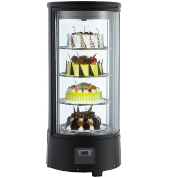 Витрина кондитерская Cooleq | Кулек CW-72 – эффектное демонстрационное оборудование, в котором охлаждаются и краткосрочно хранятся десерты, пирожные, торты или пицца. Модель устанавливают в кондитерских, специальных отделах супермаркетов, в кафетериях, пиццериях. Модель оснащена цифровым регулятором температуры, двойным стеклом, замком, 4 вращающимися круглыми хромированными полками и LED-подсветкой. Диаметр полки: 305 мм.