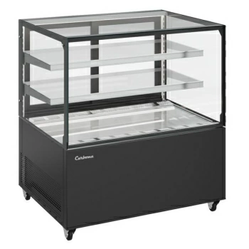 Витрина кондитерская Полюс KC71-110 VV 0,9-1 (9005) идеально подходит для любой конфигурации помещений кондитерской, пекарни, кафе. Витрины Cosmo дают возможность легко менять и расширять концепцию, варьируя пространством и объёмом экспозиции продуктов. Ровные грани стеклопакетов и отсутствие соединительных планок во внешнем контуре остекления придают витринам легкость и эффект бесконечности. Компрессор европейского производства. Электронный блок управления Carel. Корпус сталь/пластик. Цвет корпуса – черный. Термоизоляция корпуса – пенополиуретан. Полки, регулируемые по уровням. LED-освещение каждой полки. LED-освещение базовой полки снизу. Встроенные ценникодержатели.