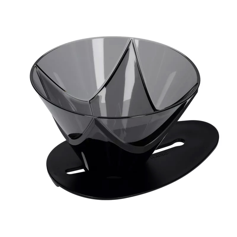 Воронка Hario | Харио Mugen 02 пластик черный - пластиковая воронка для приготовления кофе методом пролива. Форма воронки отличается от классической V60 - Mugen предназначена для приготовления кофе за один прием. В этой воронке отсутствуют внутренние ребра, поэтому бумажные фильтры прилипают к ней, когда кофе стекает по звездообразным желобкам для медленного заваривания. Также вы можете снять держатель, чтобы поместить только воронку на подставку для заваривания. Воронка изготовлена из пластика, он долговечен и прост в использовании. Эта лаконичная японская воронка позволяет вам приготовить кофе простым и эффективным способом. Метод фильтрации доставляет большое удовольствие и позволяет экспериментировать с кофе.